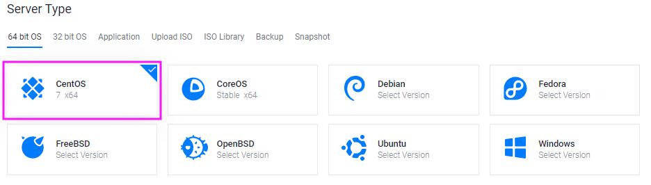 2、选择操作系统,看以前的教程,说要选centos6系统,centos7防火墙对SSR连接有影响!我选择的是centos7 64位的,安装正常。注意:目前默认的系统是centos8,经测试,目前这个教程对于cenots8不适应 ,安装不了。所以,选择系统时要选择centos7或者centos6,centos8可以用后再更新。