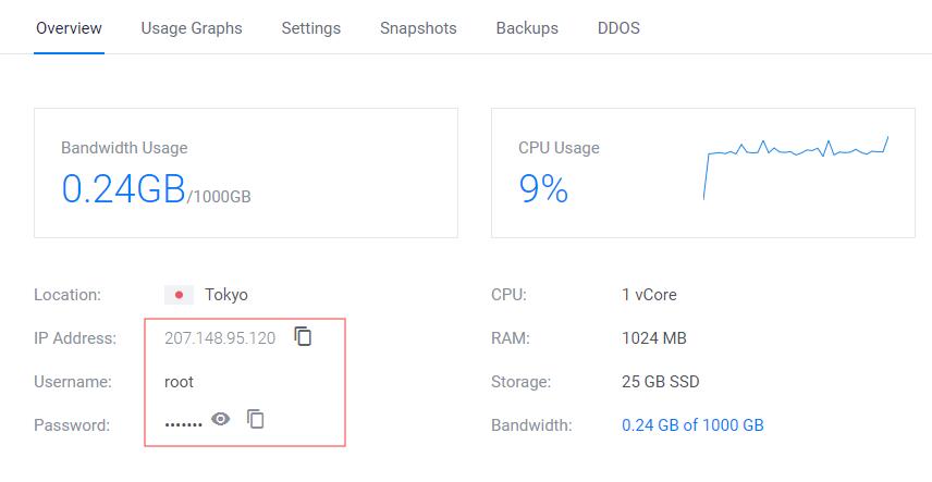服务器选好后,记下IP,及密码,下面就来配置服务器了。