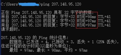 如果响应时间在一两百左右,说明可用。如果请求时断时续,那就删除这个服务器,重新开一个,直到能PING通为止,如果ping值太高的话,也不建议使用,删除再新开。