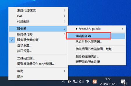 打开后,在电脑 右下角的小飞机图标单击右键 ,服务器-编辑服务器