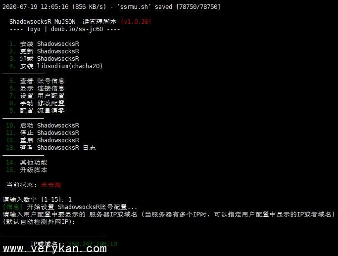wget -N --no-check-certificate https://raw.githubusercontent.com/ToyoDAdoubi/doubi/master/ssrmu.sh && chmod +x ssrmu.sh && bash ssrmu.sh