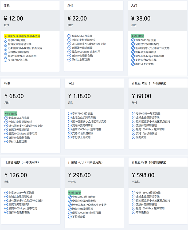 月付低至12元,季付年付更优惠,限量推出不限时流量包。