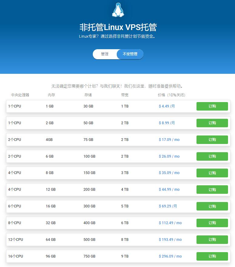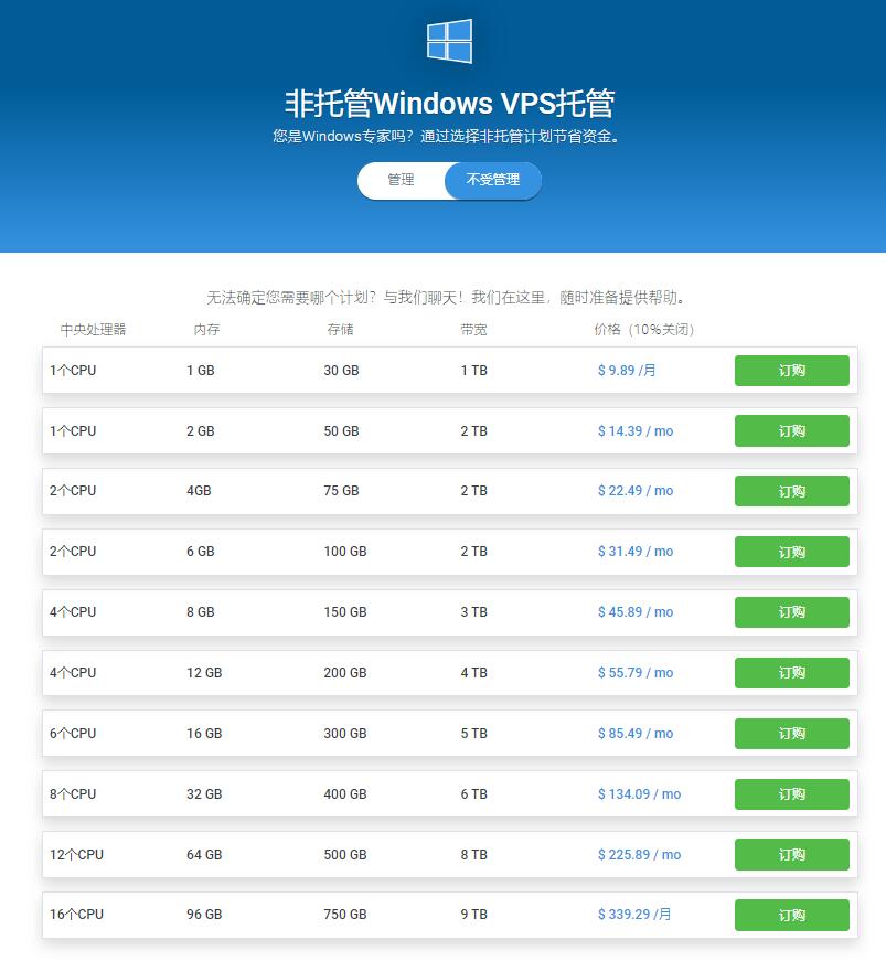 另外,Hostwinds也有半托管是美国VPS主机方案,操作起来比较简单,而且租用价格相对便宜,适合对VPS主机设置不熟悉的用户使用,但可用的使用权限较少,算是半智能式VPS主机吧。