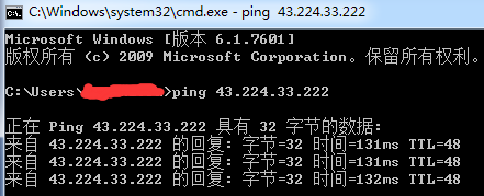 开始运行输入CMD(快捷键WIN+R),然后回车,输入ping IP地址